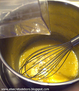 preparáis un baño maría y mezclamos con las varillas, los huevos y al azúcar